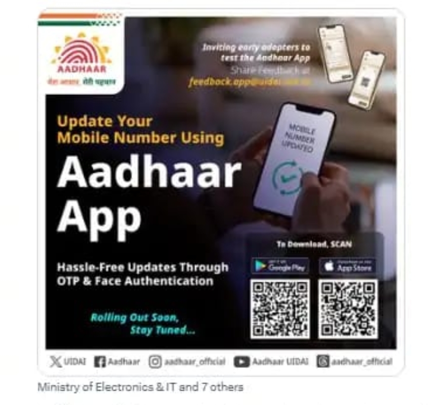 घर बैठे आधार में मोबाइल नंबर बदल सकेंगे: एप पर OTP और फेस ऑथेंटिकेशन से अपडेट होगा, किसी डॉक्यूमेंट की जरूरत नहीं